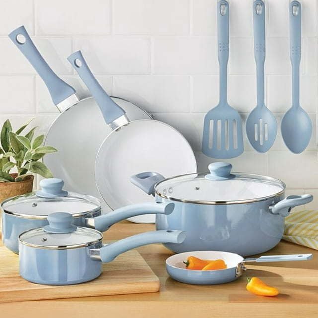 12pc Ceramic Cookware Set, Blue Linen