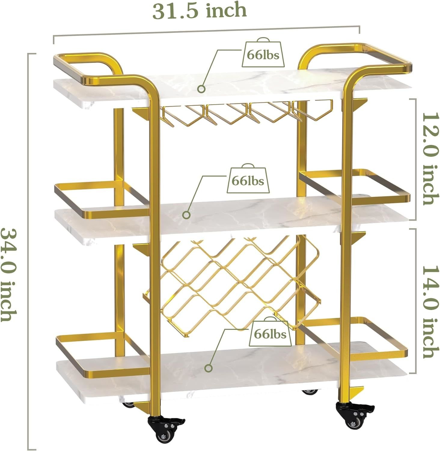 [Ideal for Multiple Occasions] This modern bar cart has pretty light stone color with perfect touch and Gold layer metal frame, its color could be a calm artistic cart for your living room with some potted plants, tea, and books on. The outdoor bar cart is also a good helper for outdoor barbecue. If you have any questions, please feel free to contact us, we are happy to serve you and solve it :)